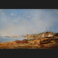 Albert PÉPIN, Vue de Marguilane au Turkestan depuis la rivière Aric, aquarelle