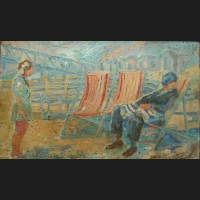 Wartan MAHOKIAN, Chevres devant une isba, tableau