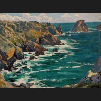 Julien DELVIGNE, Pommiers en fleurs à Arromanches, tableau