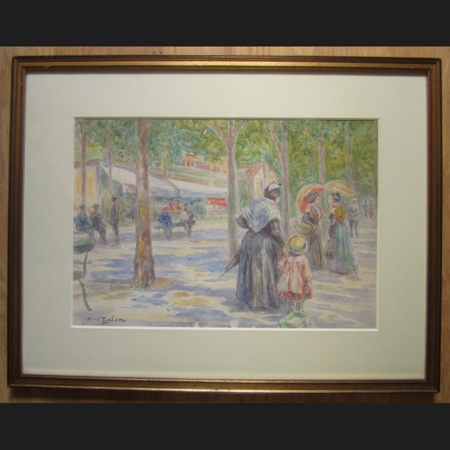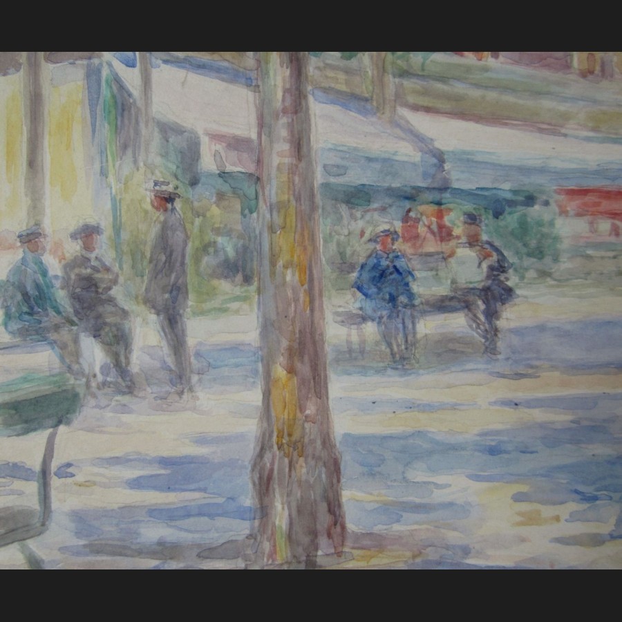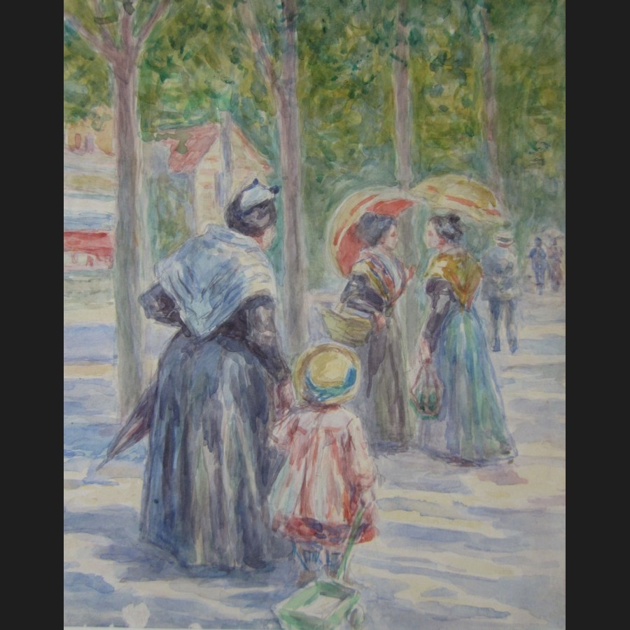 José BELON, Scène animée dans les rues d'Alès, aquarelle