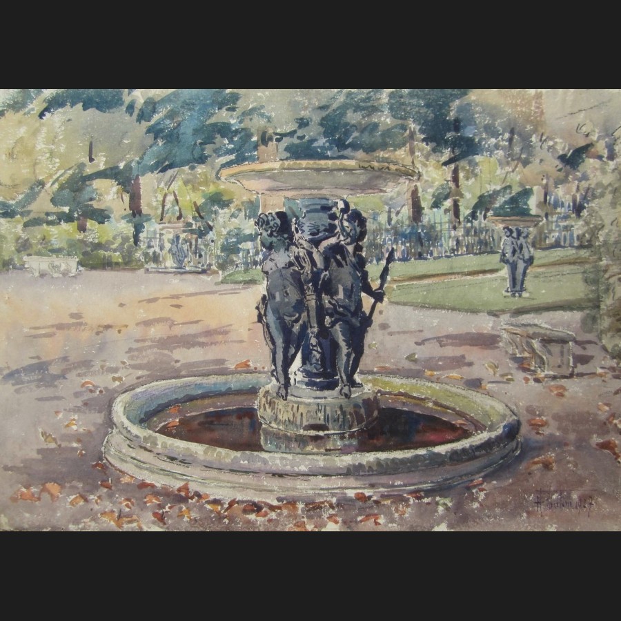 H. COULON, Vue du Parc du Château de Versailles, aquarelle