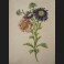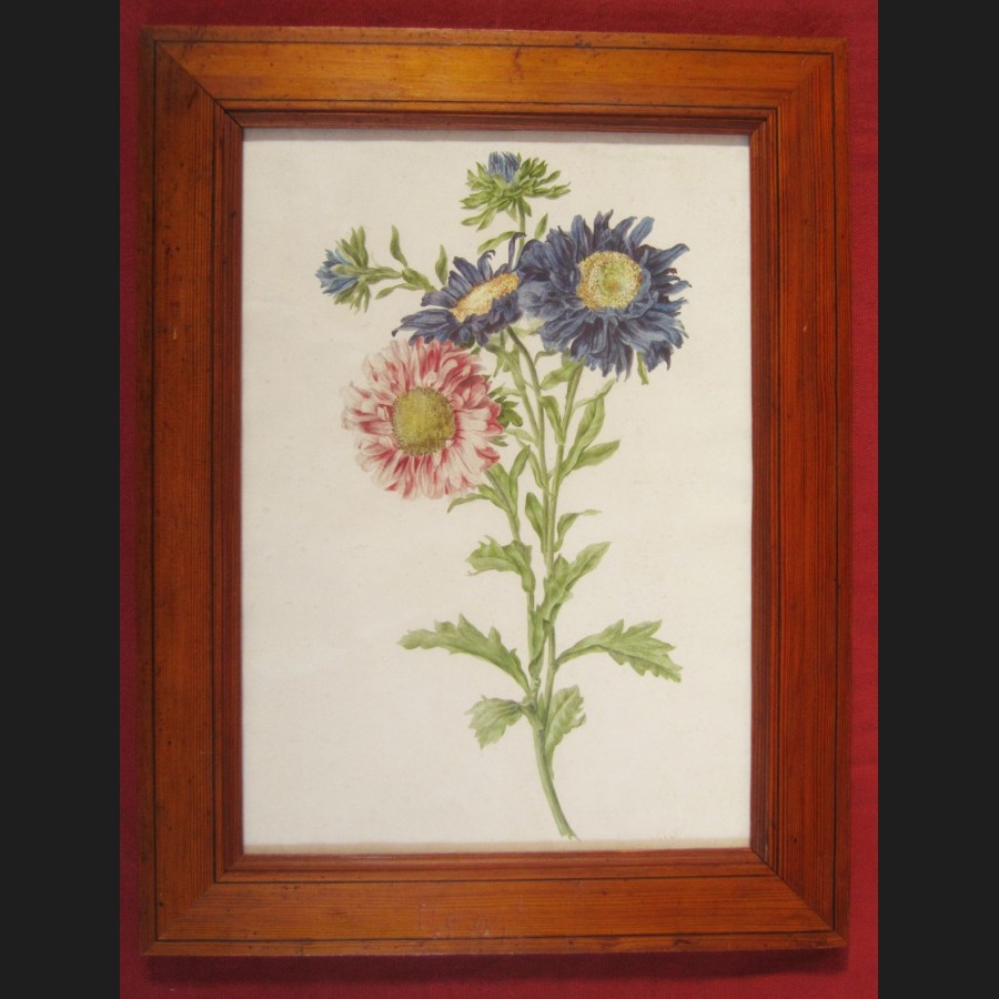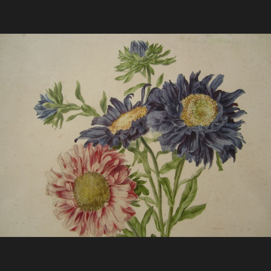 Pancrace BESSA, Dahlia rose et dahlias bleus, aquarelle