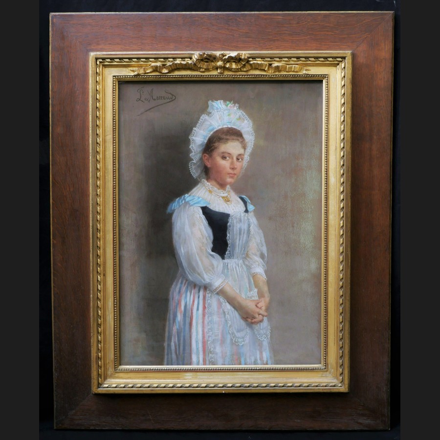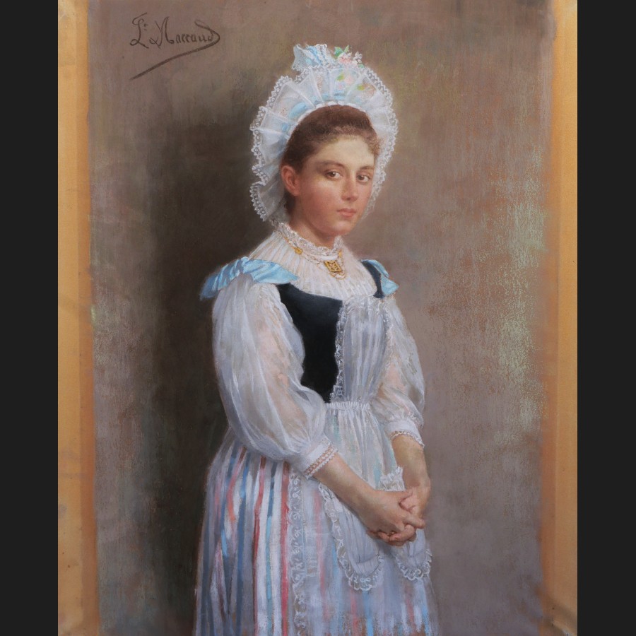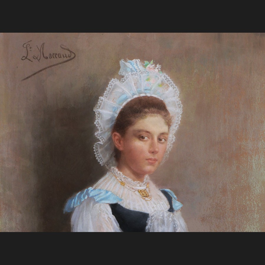 L. MACCAUD, Femme en costume traditionnel du Nord de la France, pastel