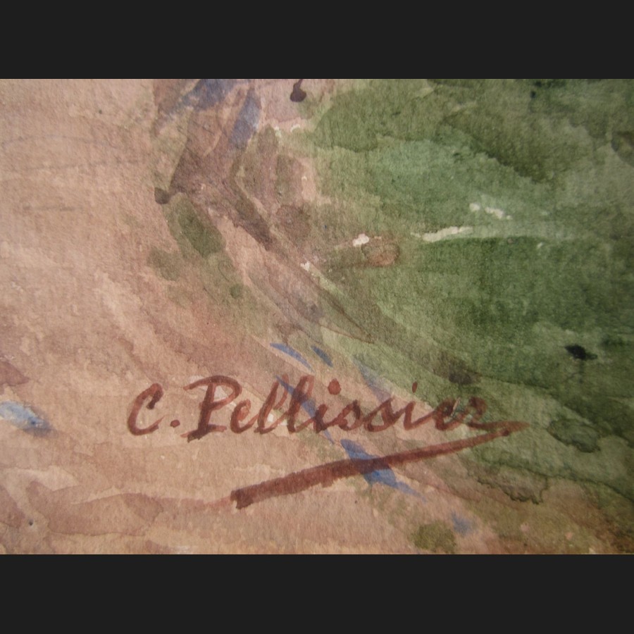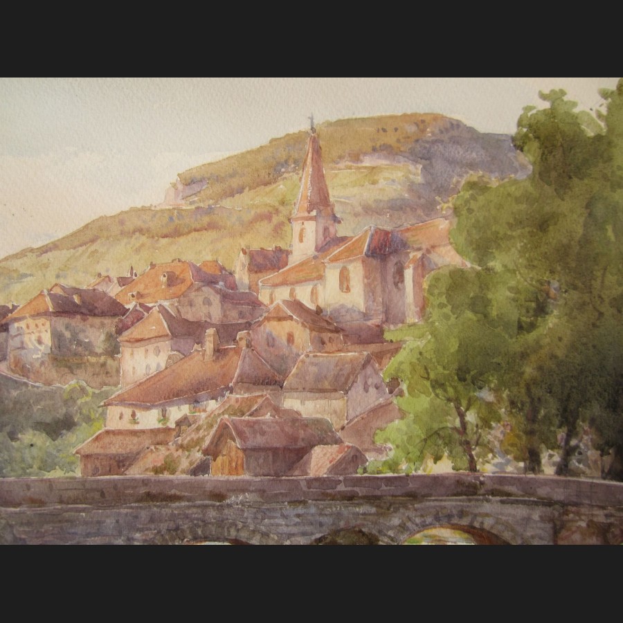 Cécile PELLISSIER, Village et pont dans le Doubs, aquarelle