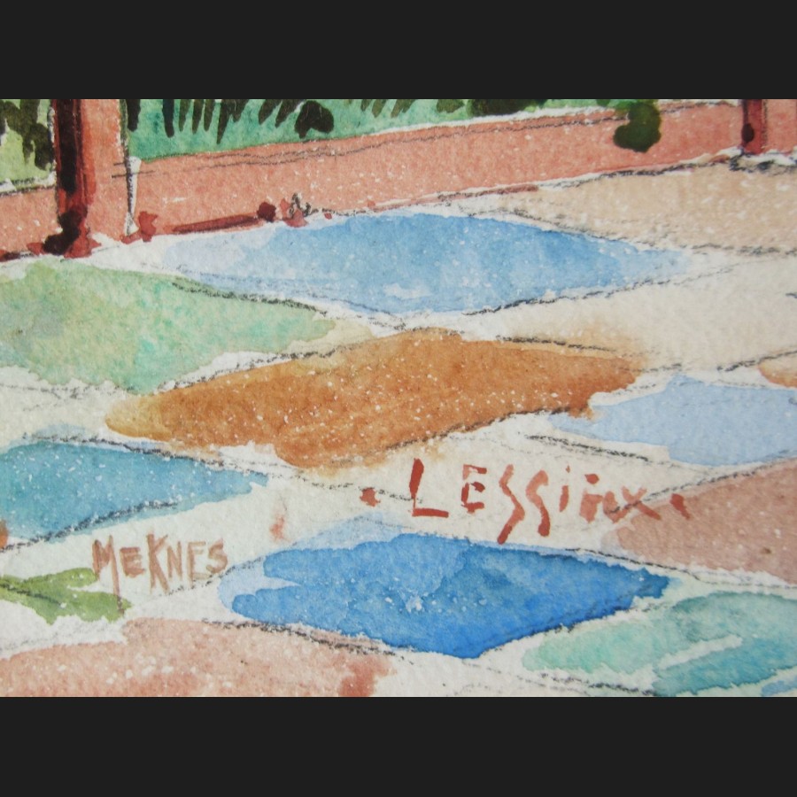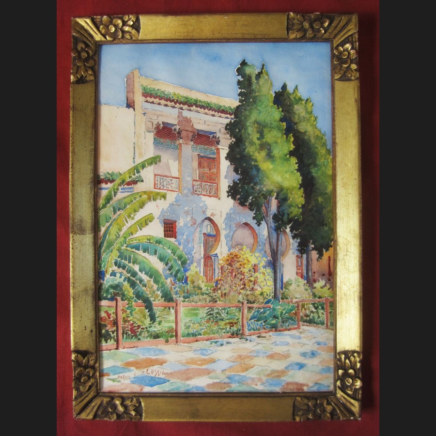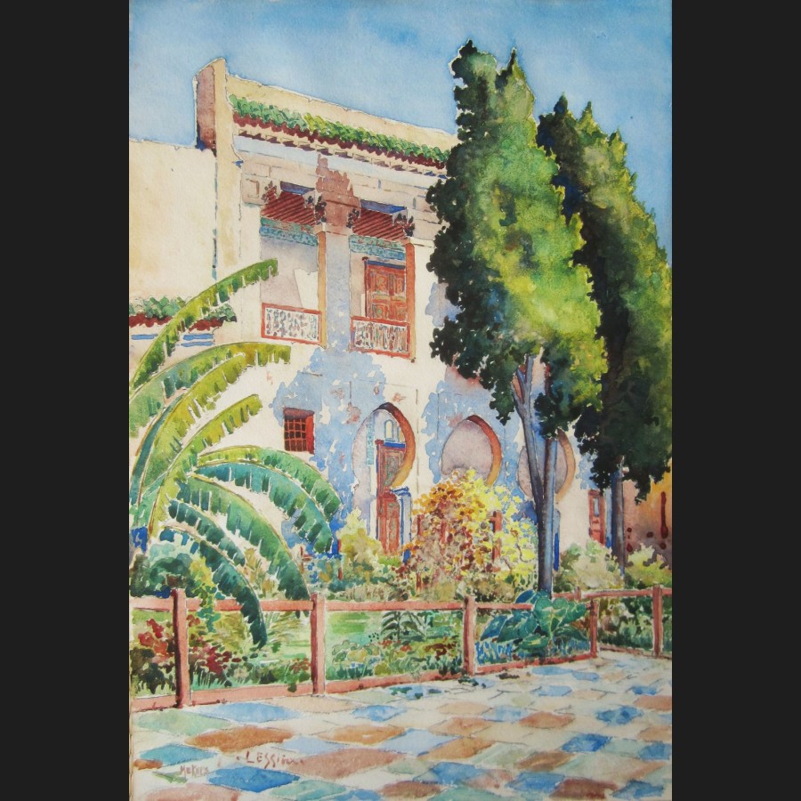 Louis-Ernest LESSIEUX, La Maison des Arts Indigènes à Meknès au Maroc, aquarelle