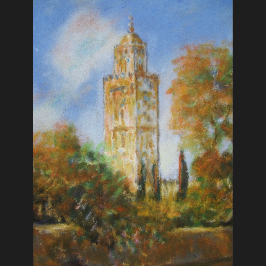 FRENCH school of the late nineteenth century, The Koutoubia in Marrakech, pastel