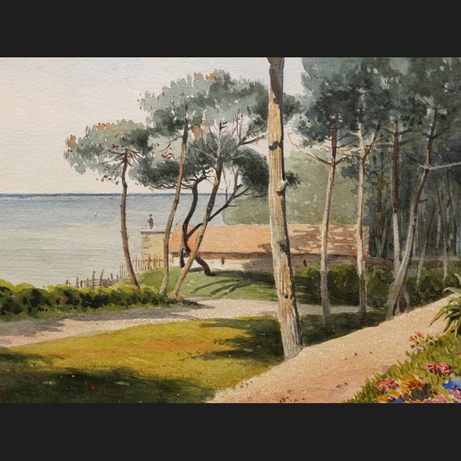 École FRANÇAISE circa 1910, Paysage à Arcachon, aquarelle