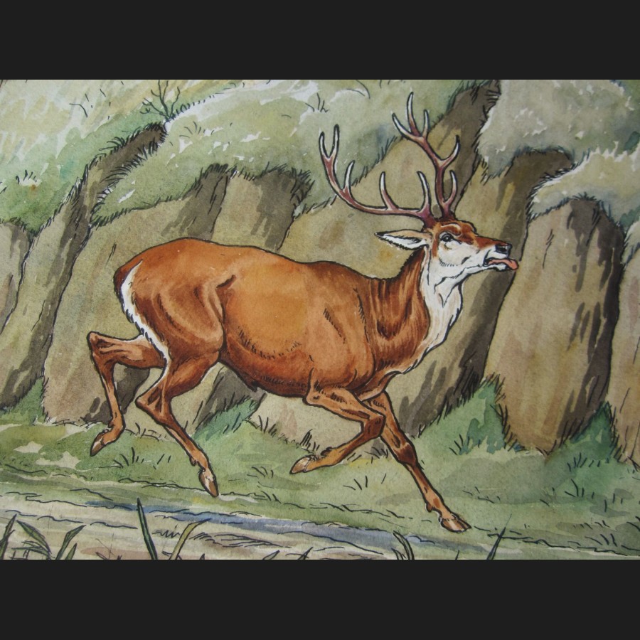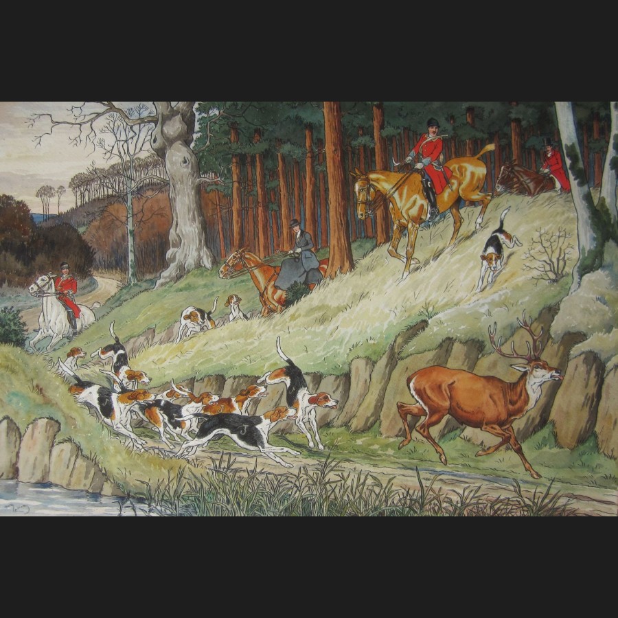 Harry ELIOTT, Le débuché du cerf, aquarelle