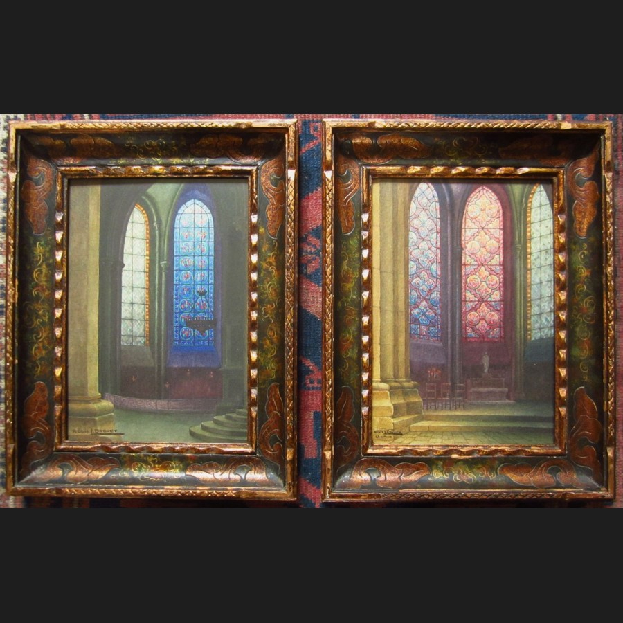 Regis DREVET, Cathedrale de Chartres : Chapelle absidiale et Chapelle Saint Joseph, paire d'aquarelles