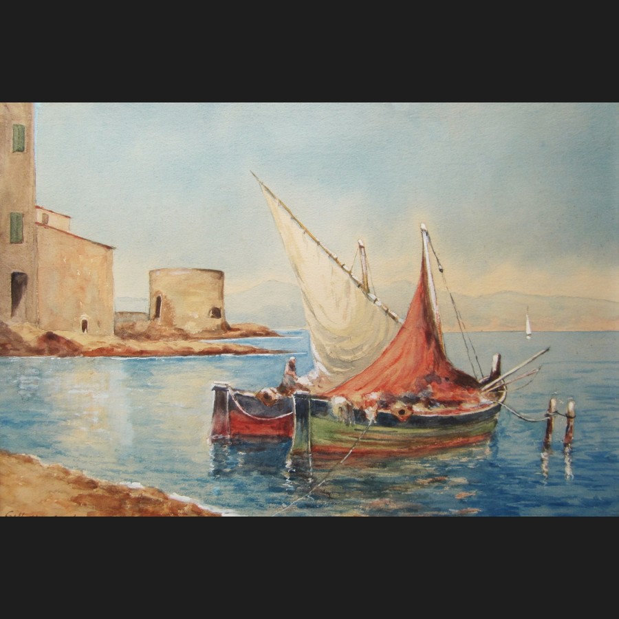 François GILLETTA CAMBIANIS, Le port des pecheurs à Saint-Tropez, aquarelle