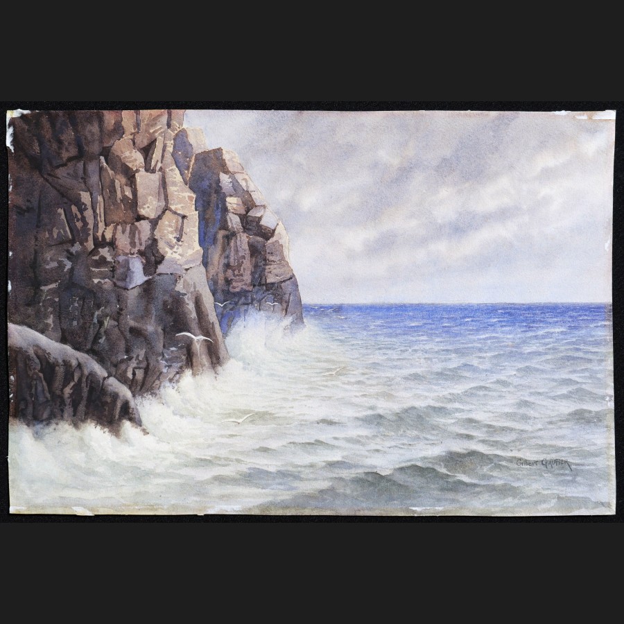 Gilbert GAUTIER, Côte rocheuse frappée par la houle, aquarelle