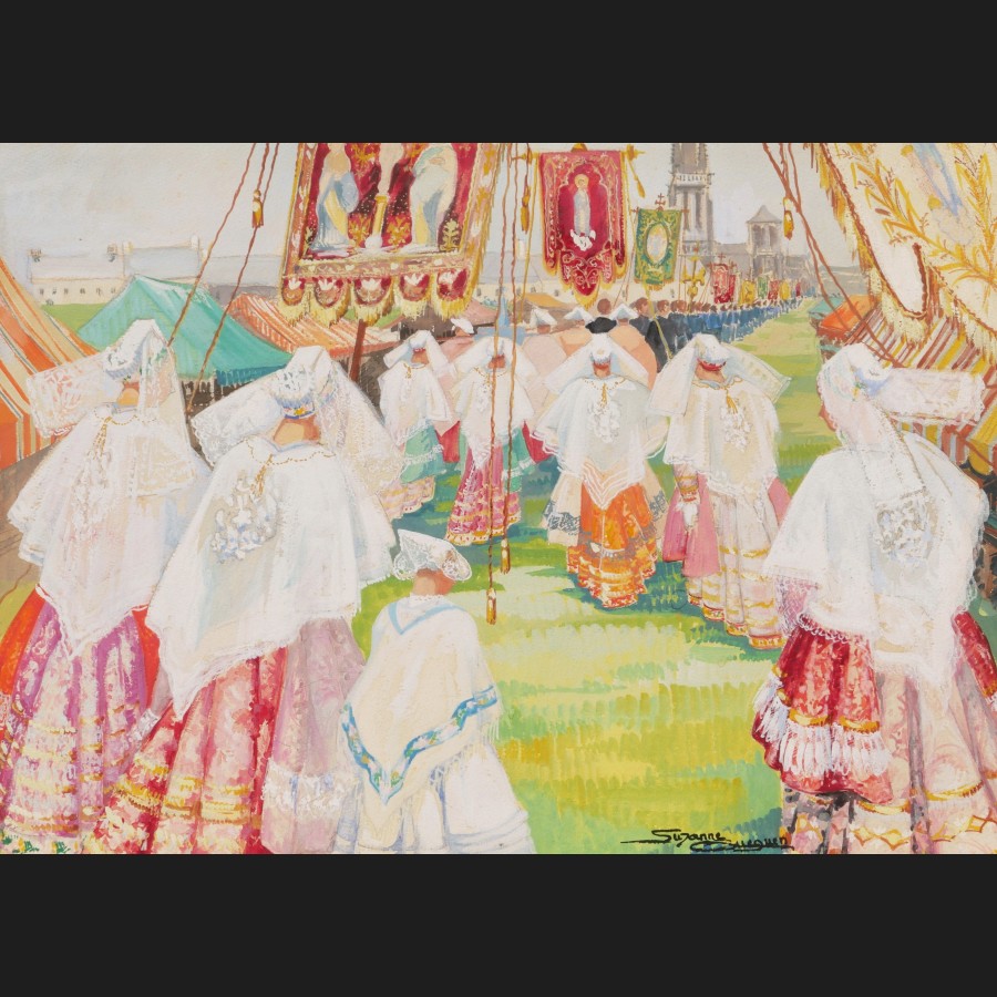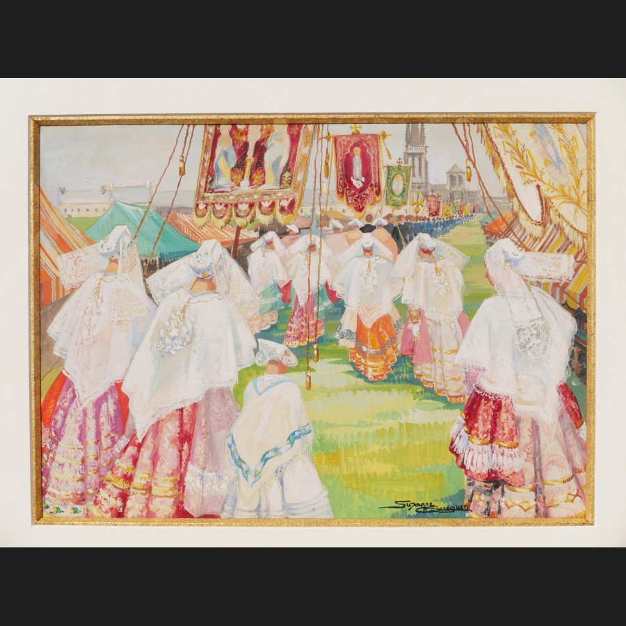 Suzanne GUEGUEN, Scène de Pardon en Bretagne, gouache