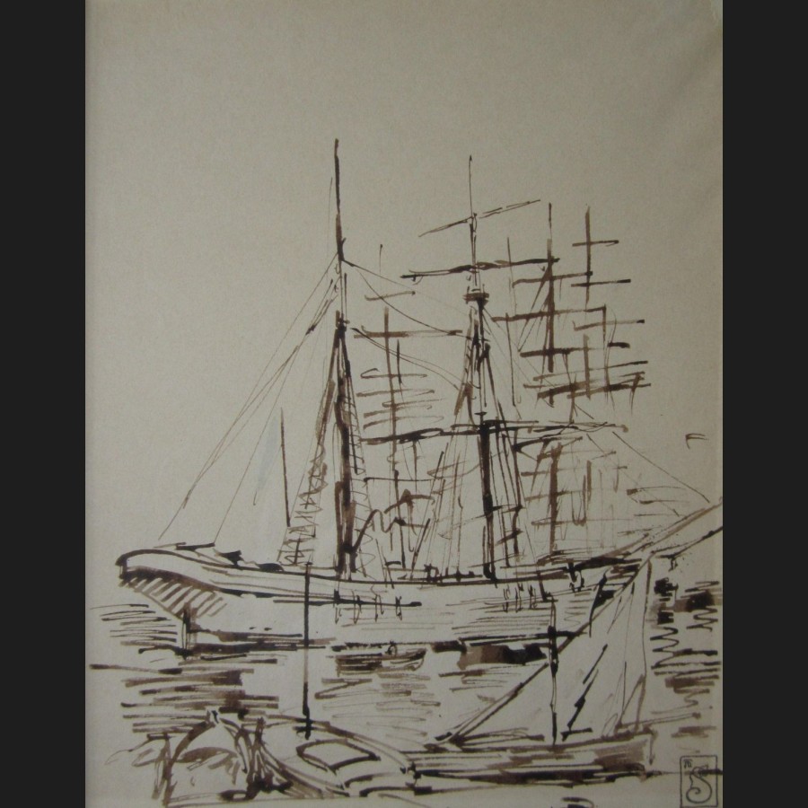 Theophile Alexandre STEINLEN, Navires, dessin