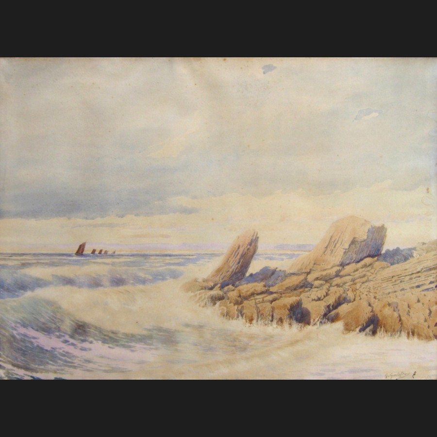 Georg Friedrich GOTTLER dit Georges GODEFROY, Bord de mer, aquarelle