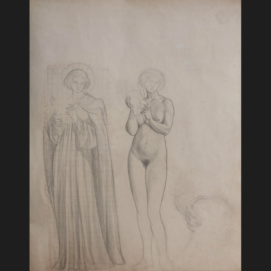 École FRANÇAISE fin XIXème siècle, Étude de femme drapée et de femme nue tenant un chrisme, dessin