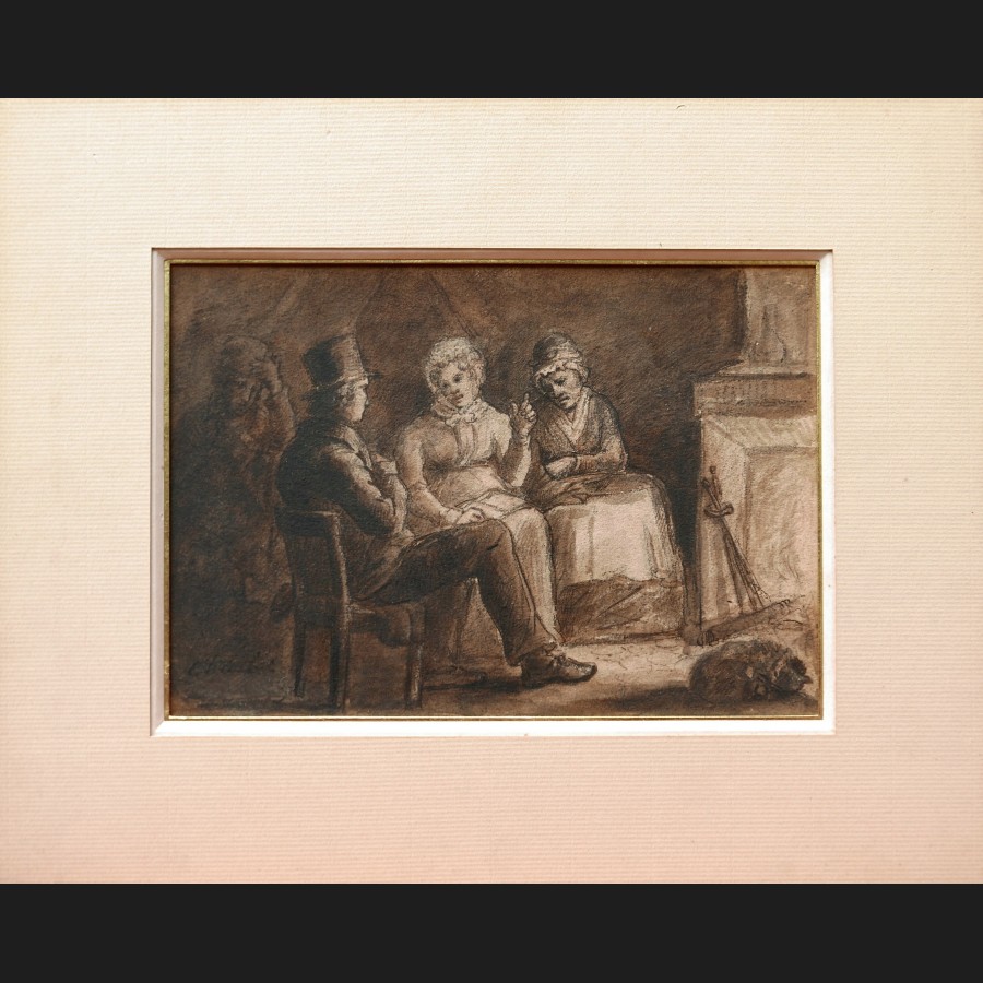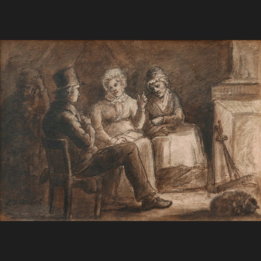 Nicolas Toussaint CHARLET, Veillee au coin du feu, dessin