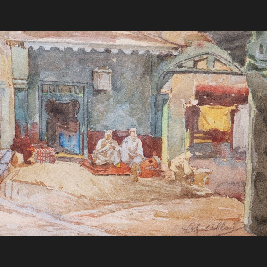 Charles ALLARD, Rue et personnages en Algérie, aquarelle