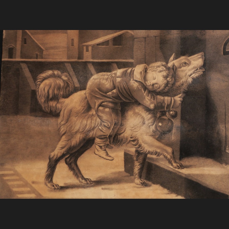 Ecole FRANCAISE circa 1850, L'enfant sauve par un chien, dessin