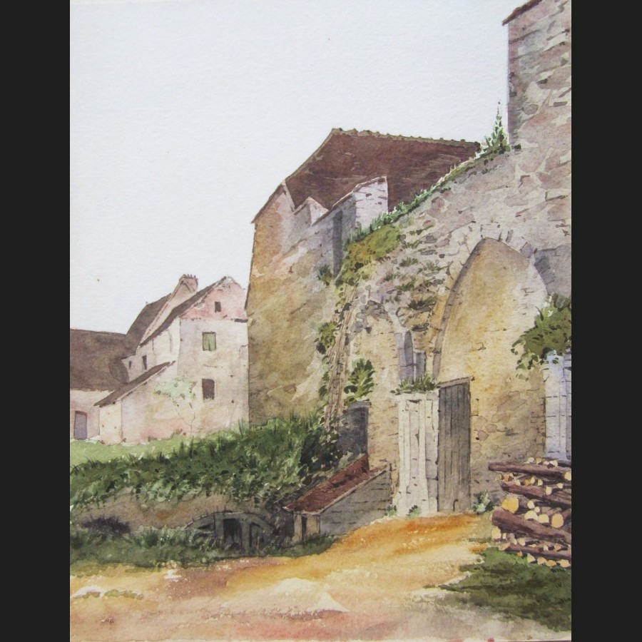 Abel CHANCEL, Vieilles maisons et ogives à Provins, aquarelle