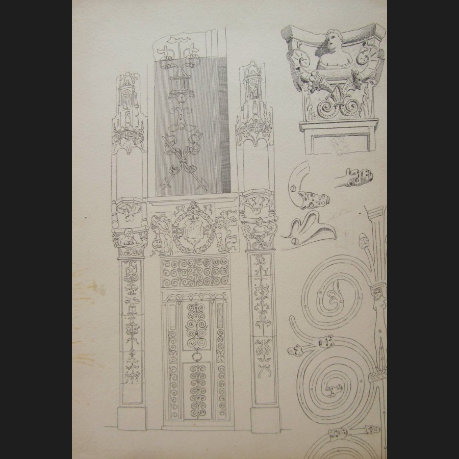 Georges BELLANGER, Chapiteau aux oiseaux dans l'église Saint-Quiriace à Provins, dessin