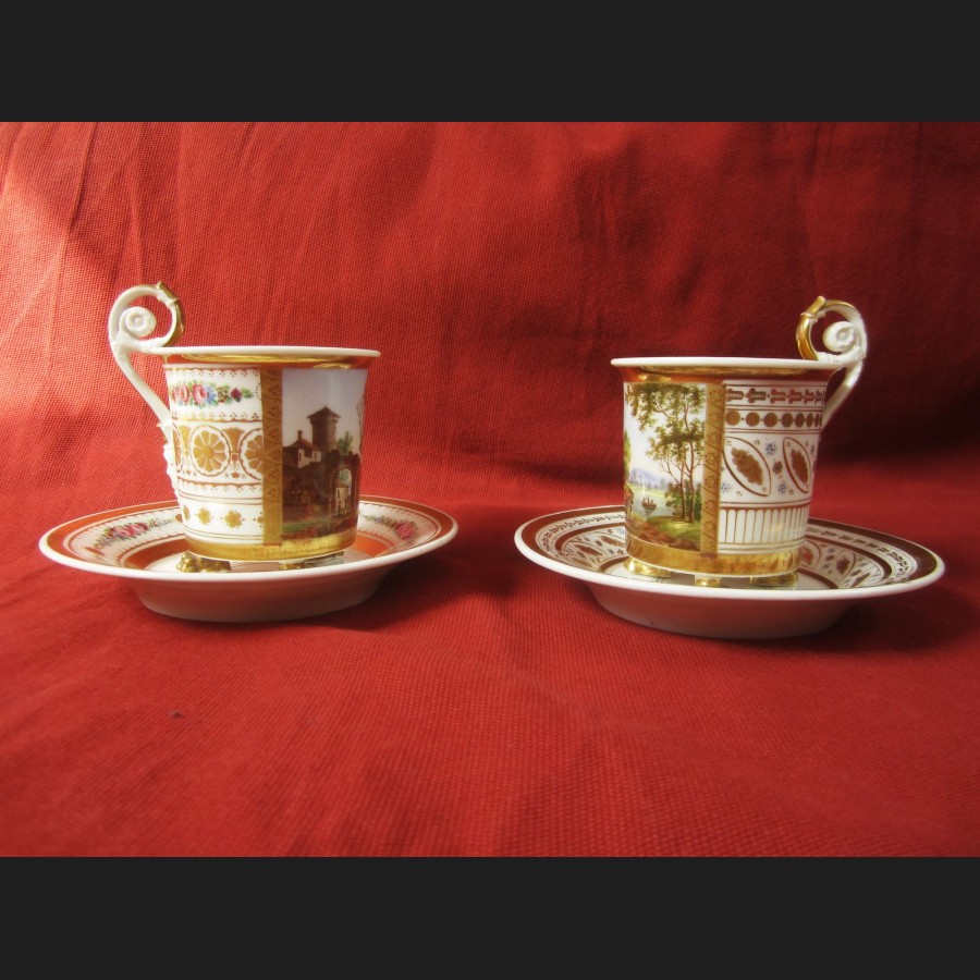 Paire de tasses et leur sous-tasse d'époque Restauration