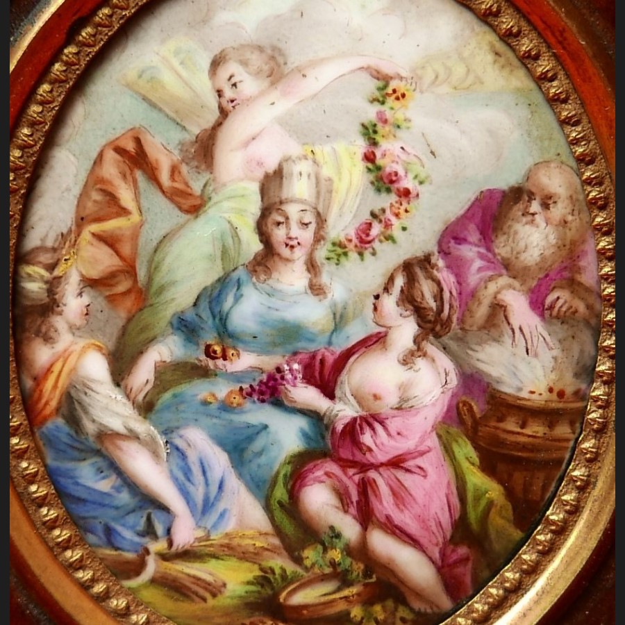 École FRANÇAISE circa 1770, Allégorie des Quatre Saisons, miniature sur émail