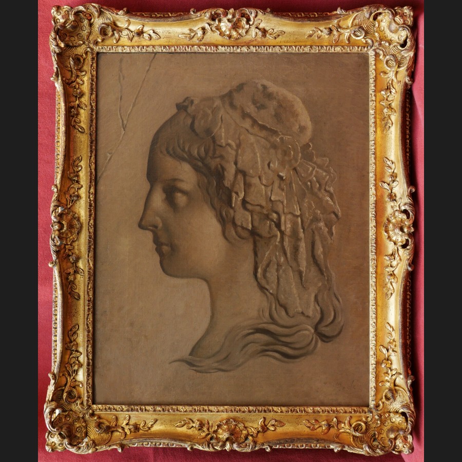 Joseph Paul MESLÉ, Portrait de femme à la cocarde en grisaille, tableau