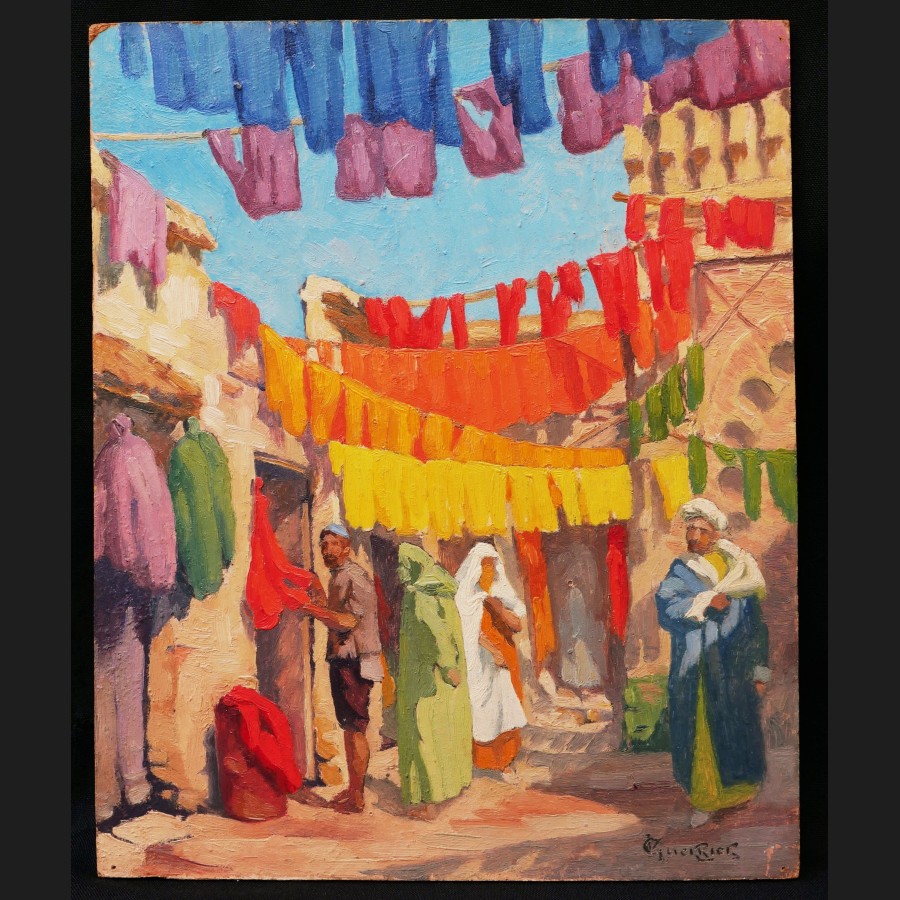 École FRANÇAISE de la prmeière moitié du XXème siècle, Le Souk des Teinturiers à Marrakech, tableau