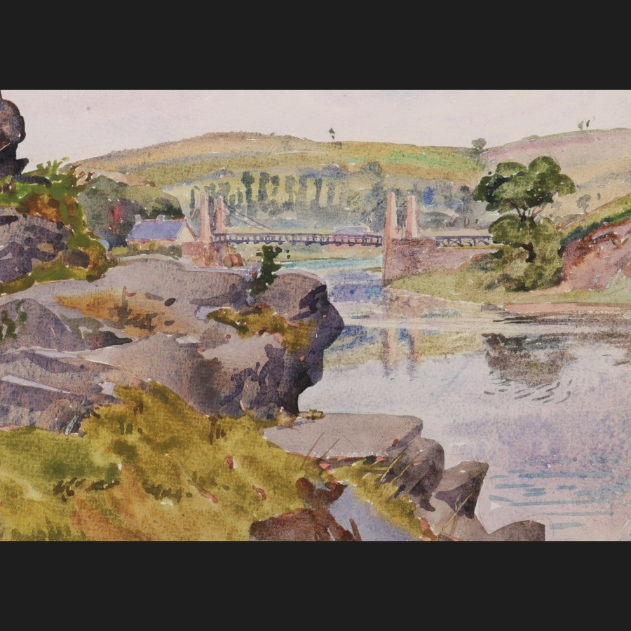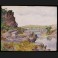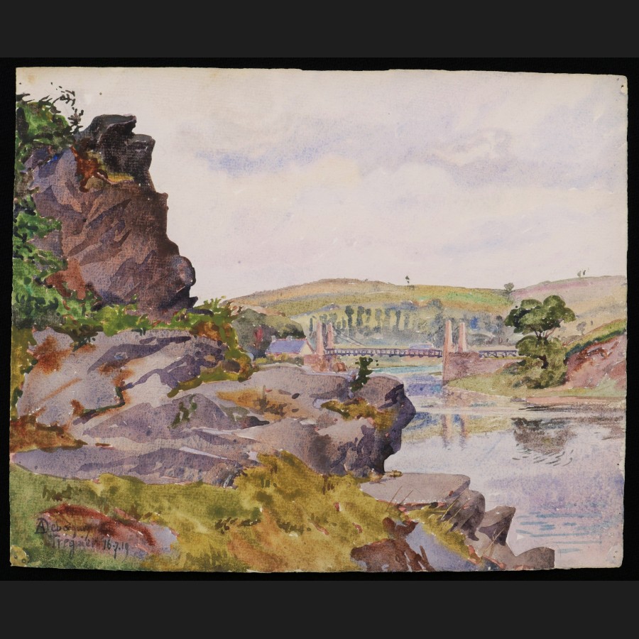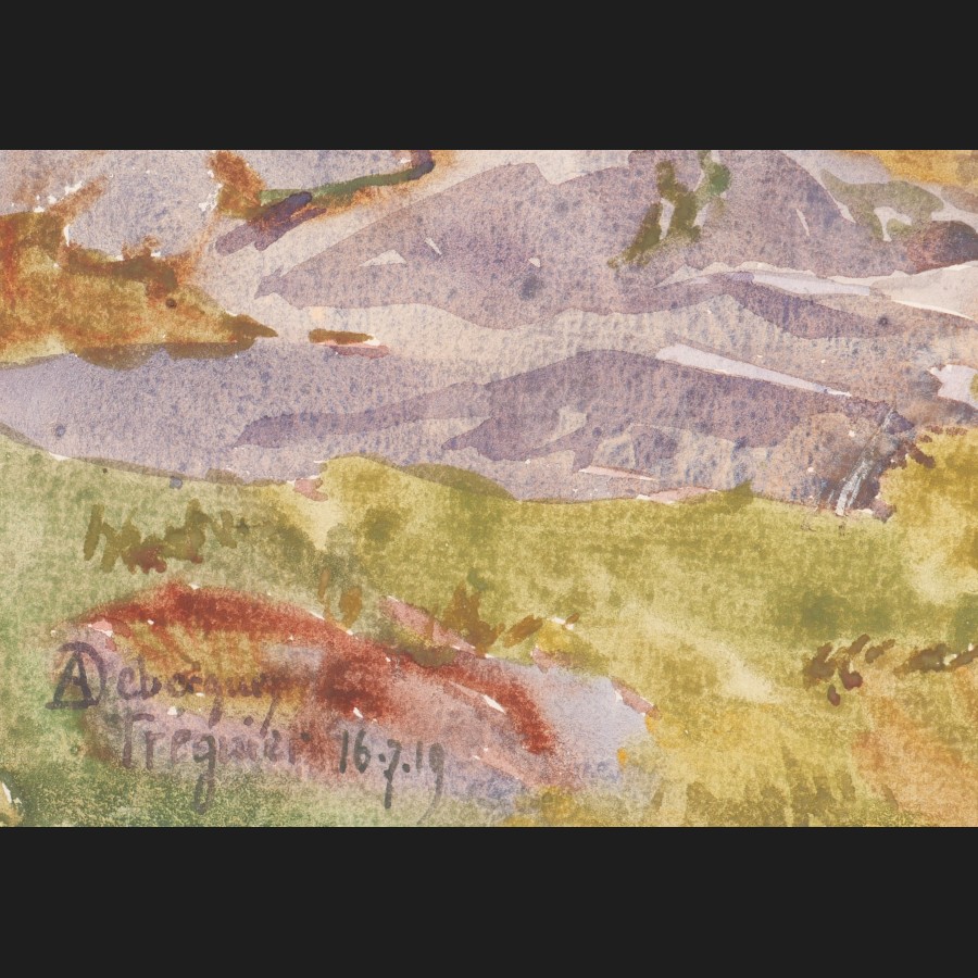 André Alfred DEBERGUE, Vue du clocher de l'église Notre-Dame à Josselin, aquarelle