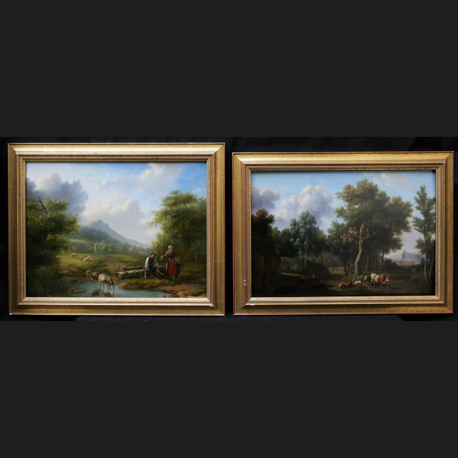Ignatius Jozephus VAN REGEMORTER, Personnages et troupeaux dans des paysages idéalisés, paire de tableaux