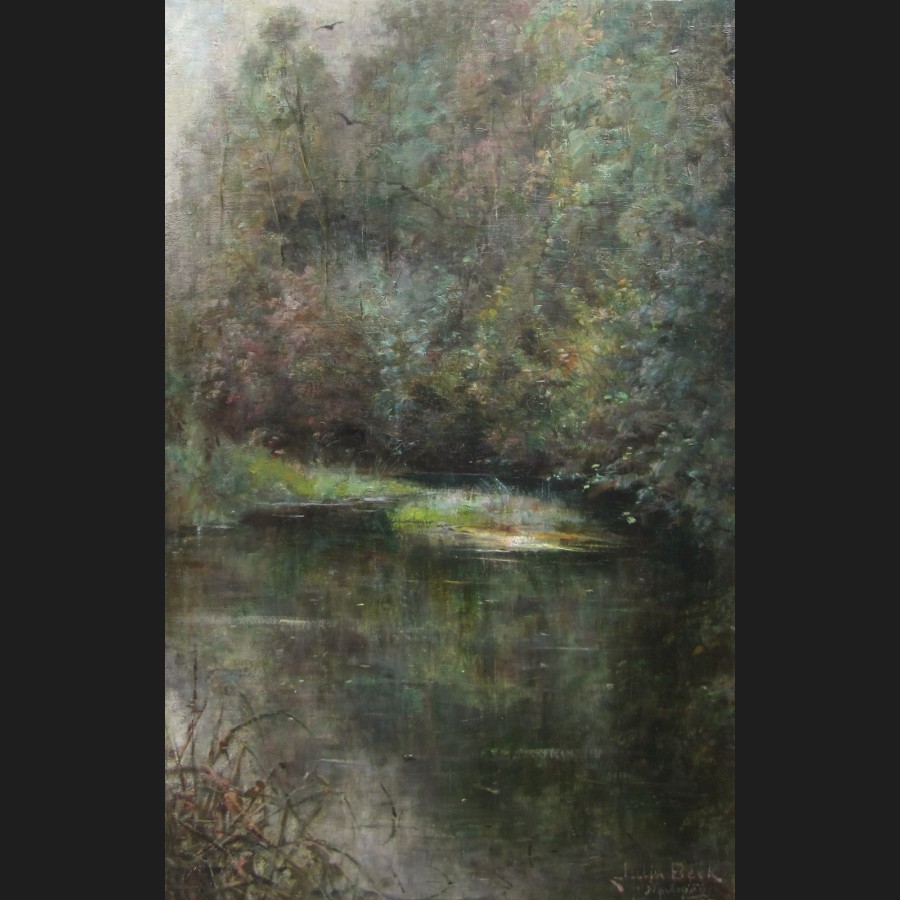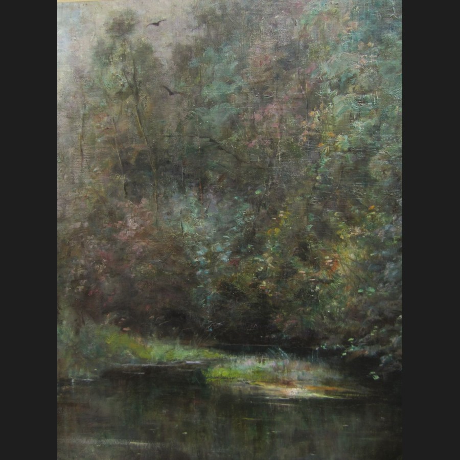 Louis MARANDAT, Chasse à courre dans une forêt de bouleaux à Autun en hiver, tableau