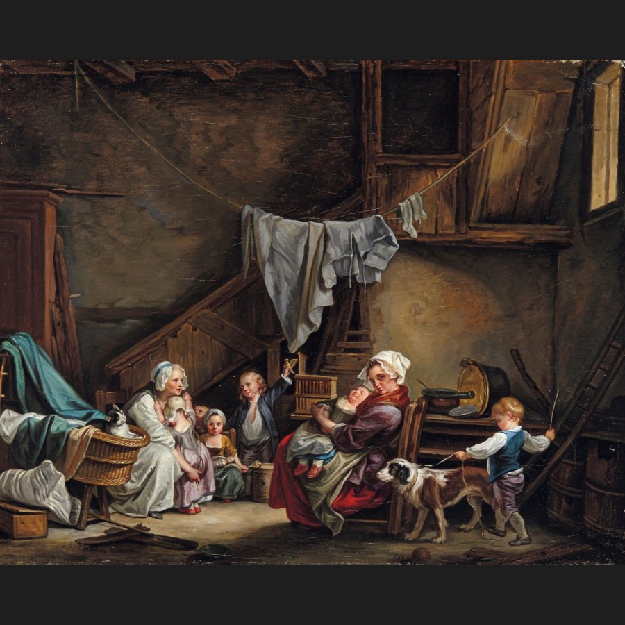 École FRANÇAISE du XVIIIème siècle, d'après Jean-Baptiste GREUZE, Les Sevreuses, tableau