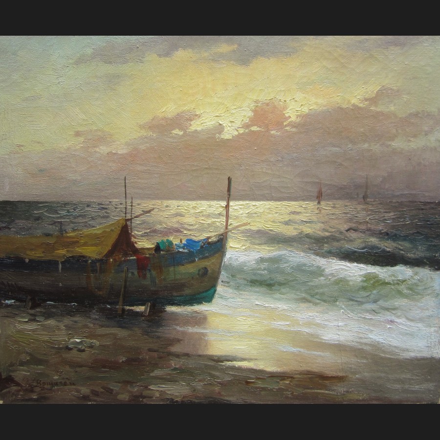 BOMAREN, Bord de mer au soleil couchant, tableau