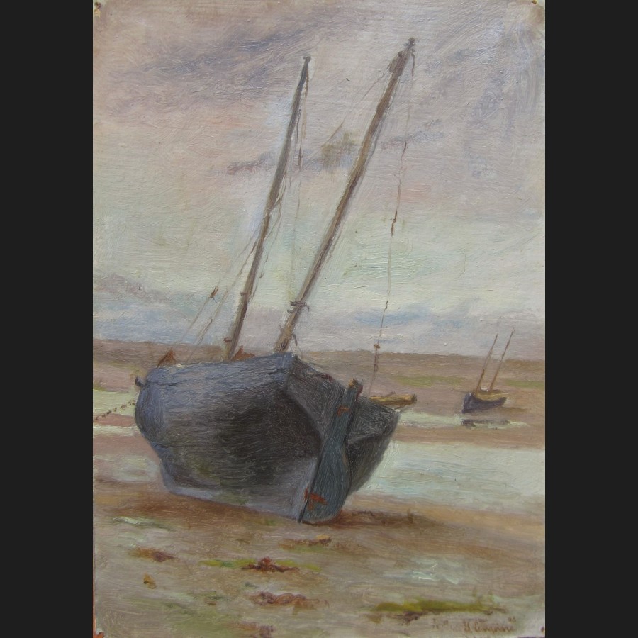 F. PLAISANT, Cavaliers arabes passant un gué, tableau