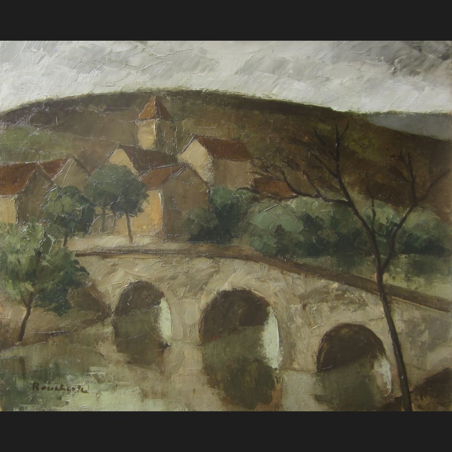 F. PLAISANT, Cavaliers arabes passant un gué, tableau