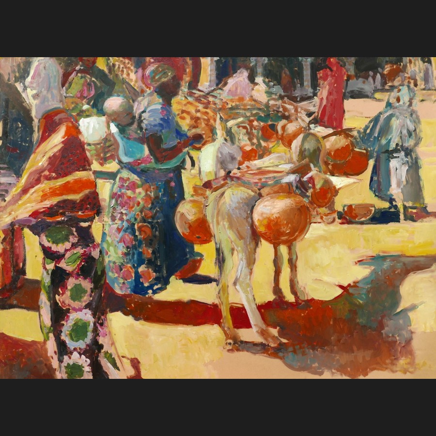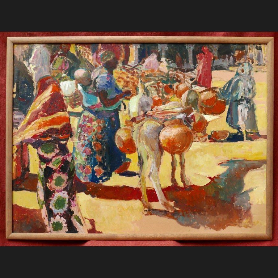 École FRANÇAISE du XXème siècle, Scène de marché en Afrique, tableau