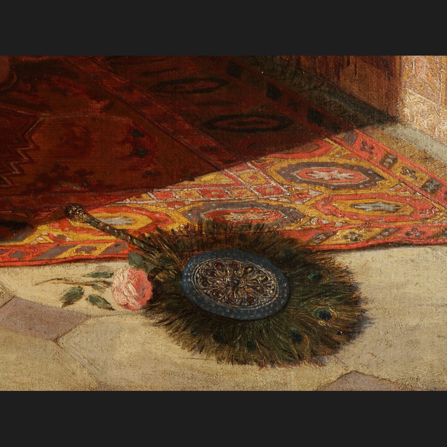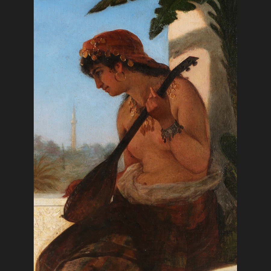 A. VERNI, Femme jouant du luth sur une terrasse à Constantinople, tableau
