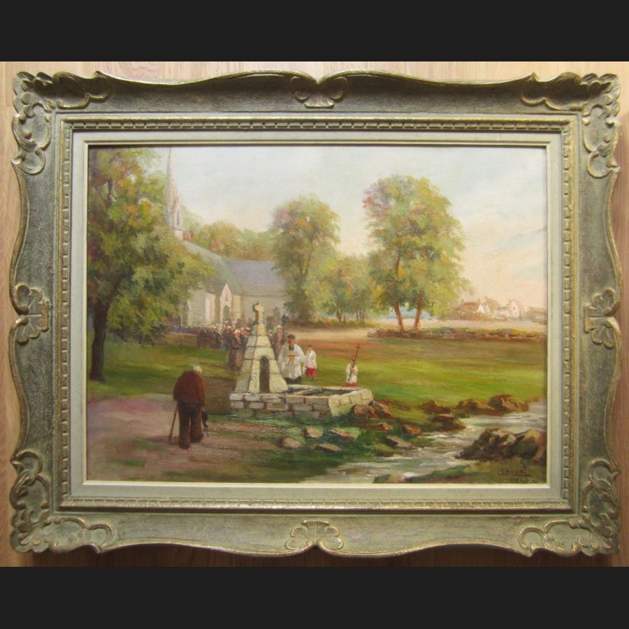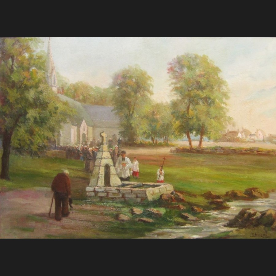Louis CHAZAL, Procession devant une église en Bretagne, tableau