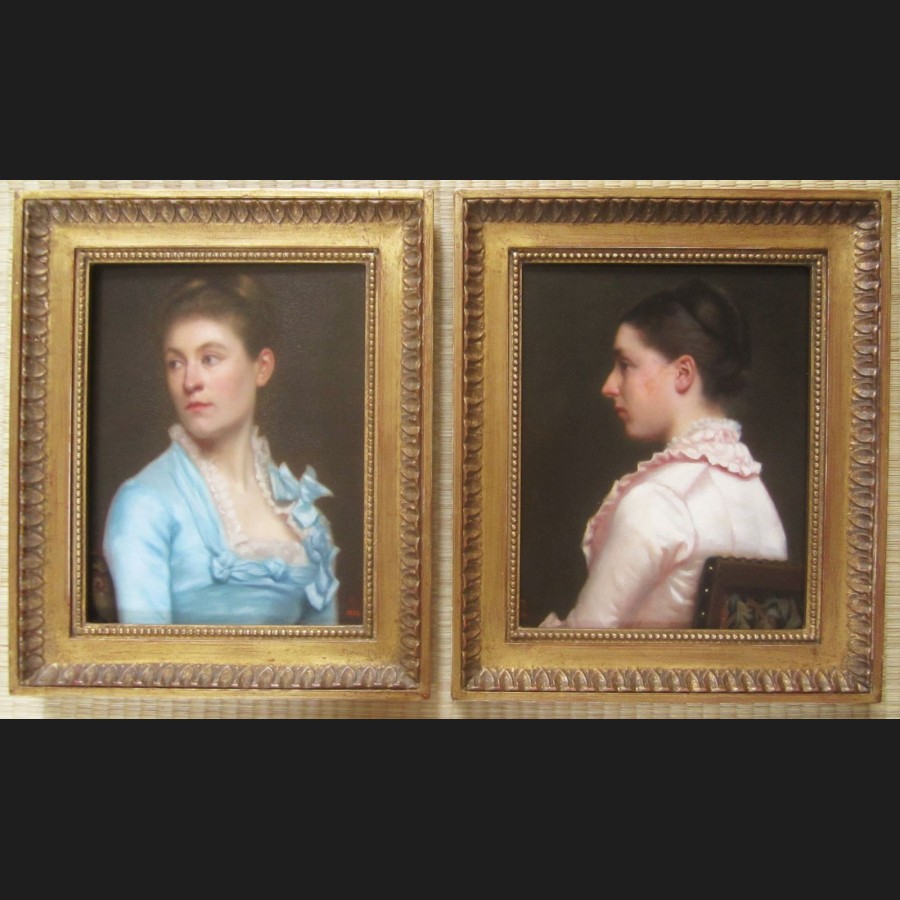 École FRANÇAISE du XIXème siècle, Portraits de femmes, paire de tableaux
