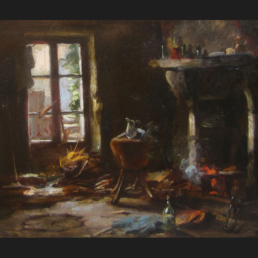 Emmanuel ROUSSEAU, Intérieur de maison paysanne, tableau