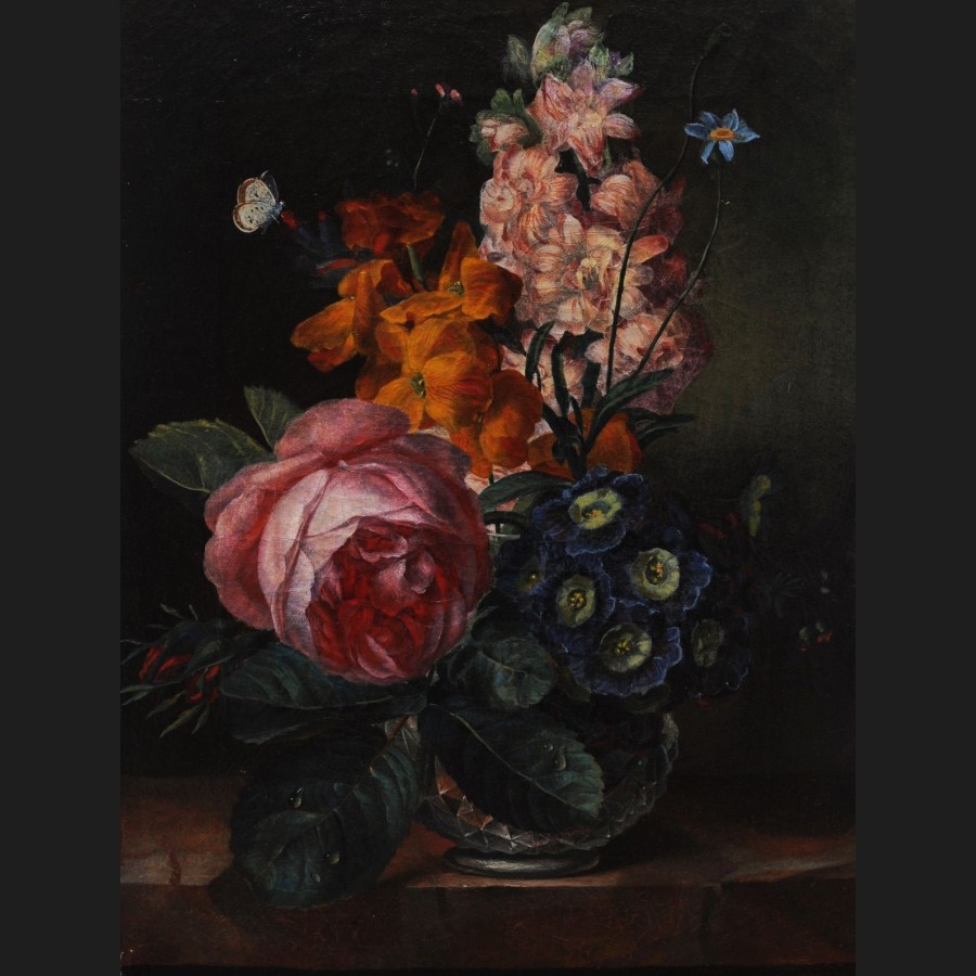 Attribué à Michel Bruno BELLANGÉ, Bouquet de fleurs sur un entablement, tableau