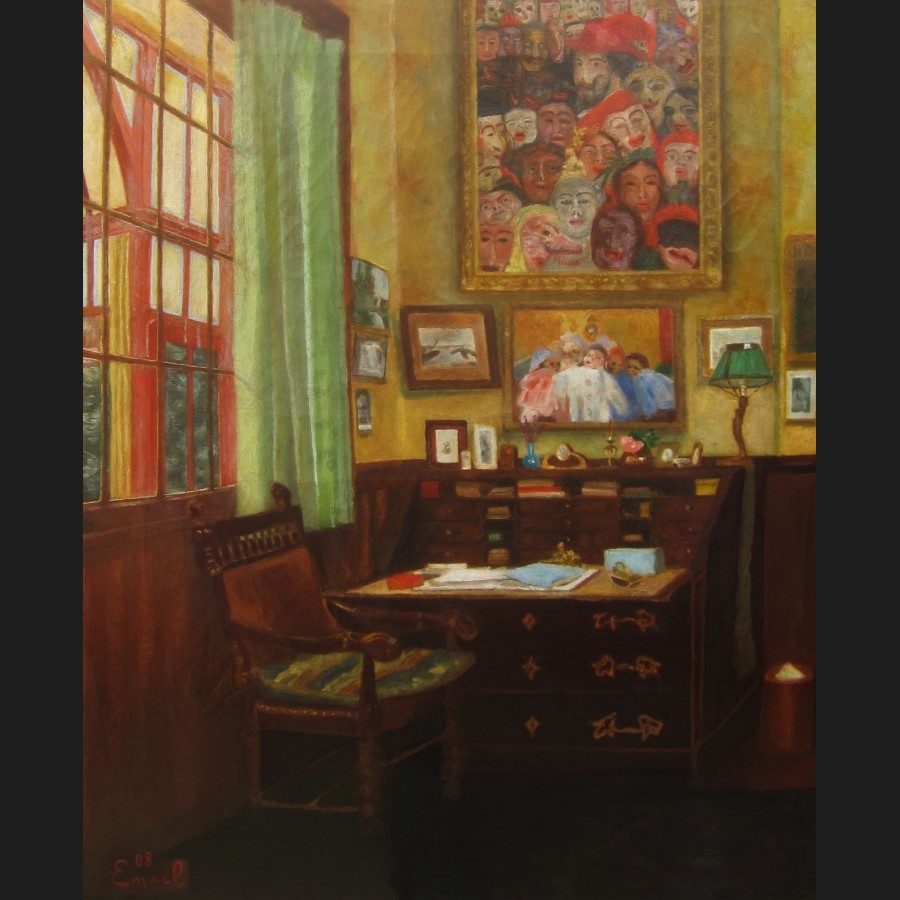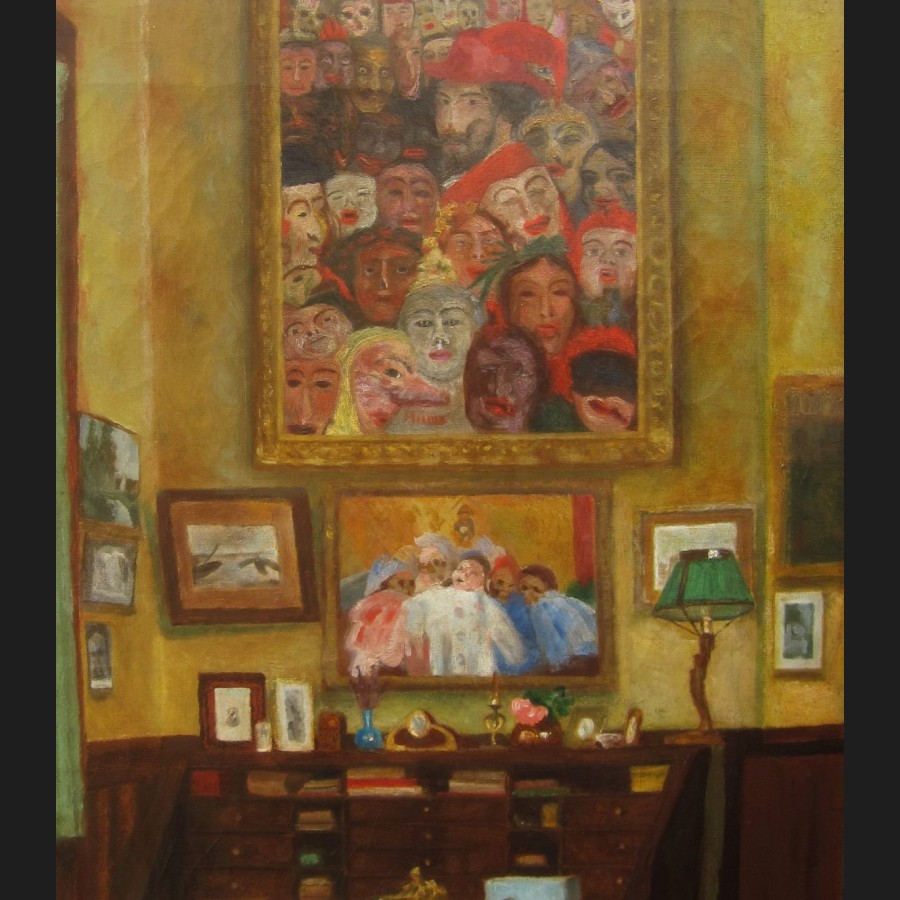 Emma LAMBOTTE-PROTIN, dite EMAËL, Intérieur avec deux toiles de James Ensor, tableau