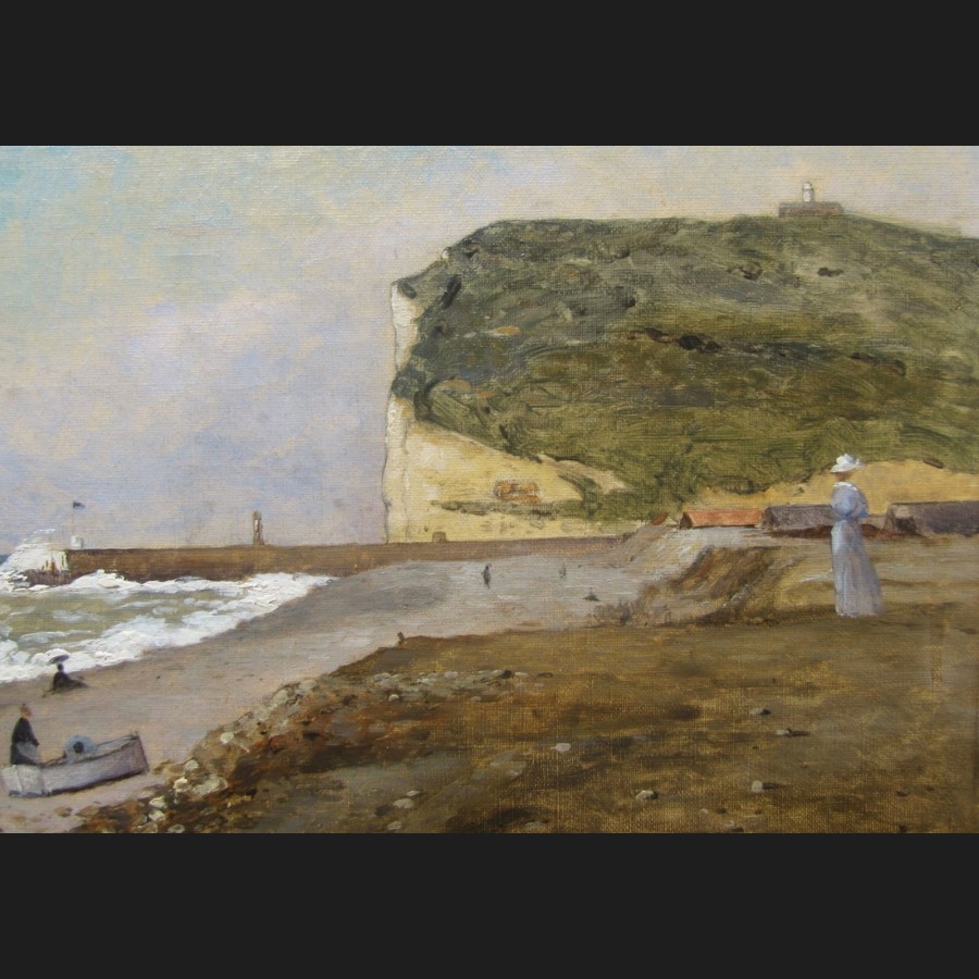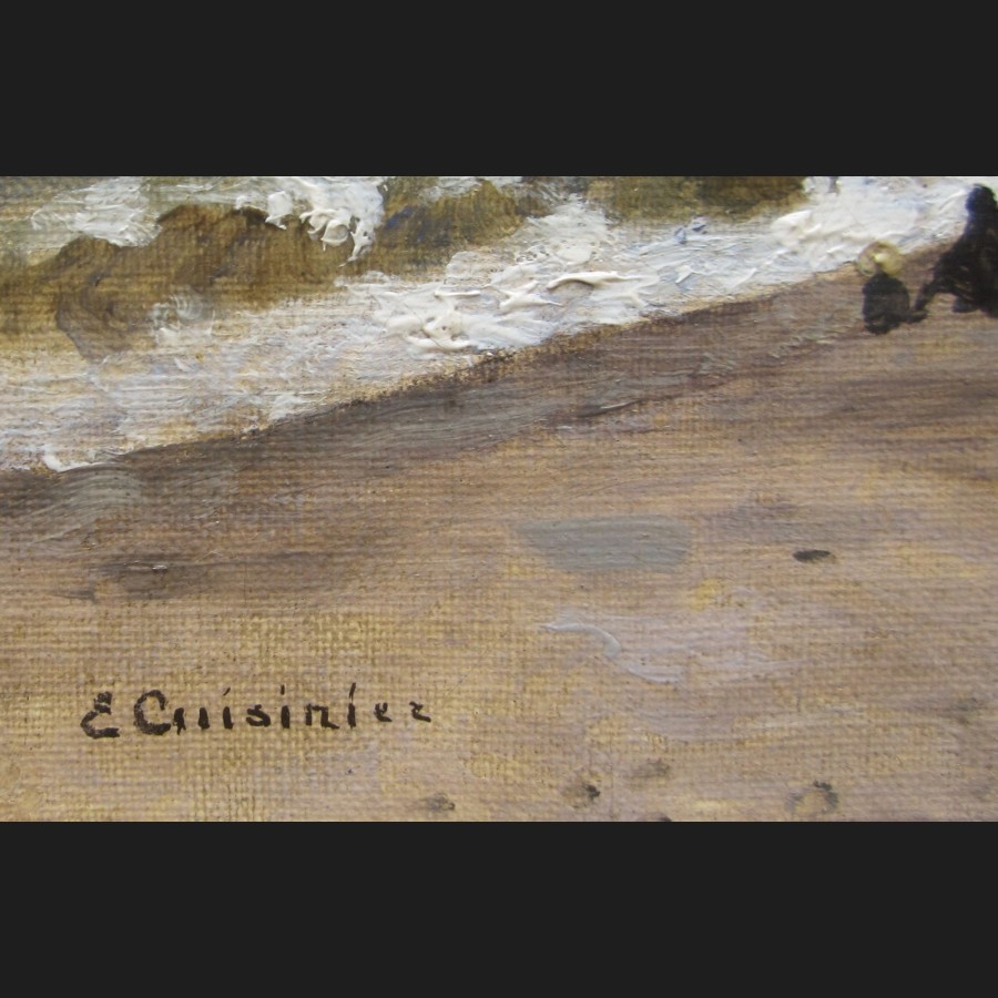 Jules Edmond CUISINIER, La plage animée et la falaise à Fécamp, tableau