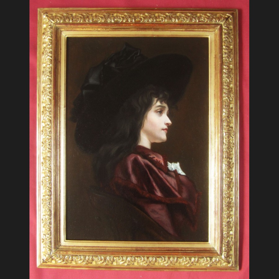 FRENCH school of the late nineteenth century, Elegant woman wearing a black hat, painting
