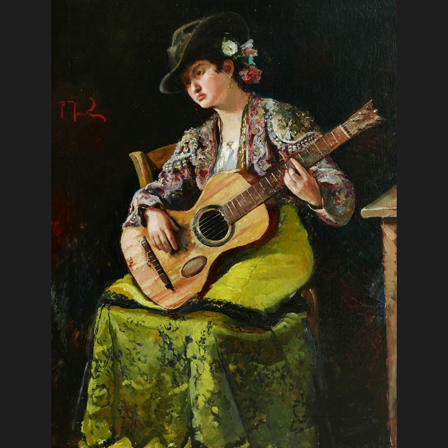Felix INIESTA SOTO, Espagnole jouant de la guitare, tableau