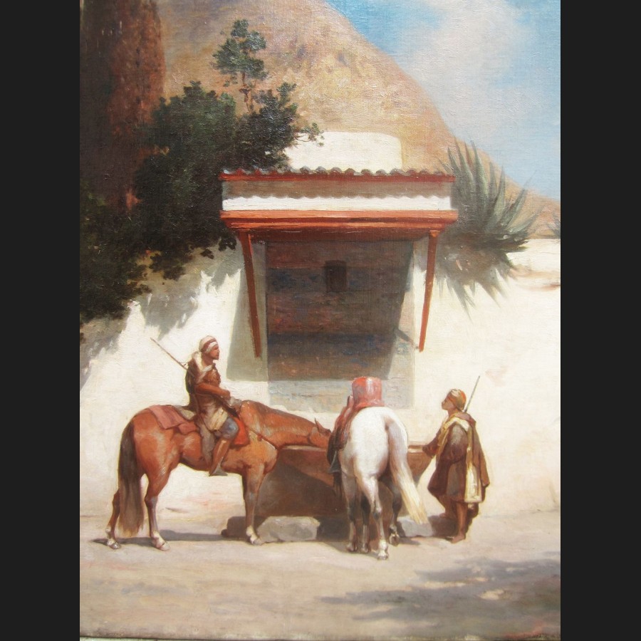 Attribué à Victor Pierre HUGUET, Halte de cavaliers arabes à l'abreuvoir, tableau