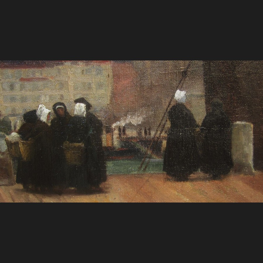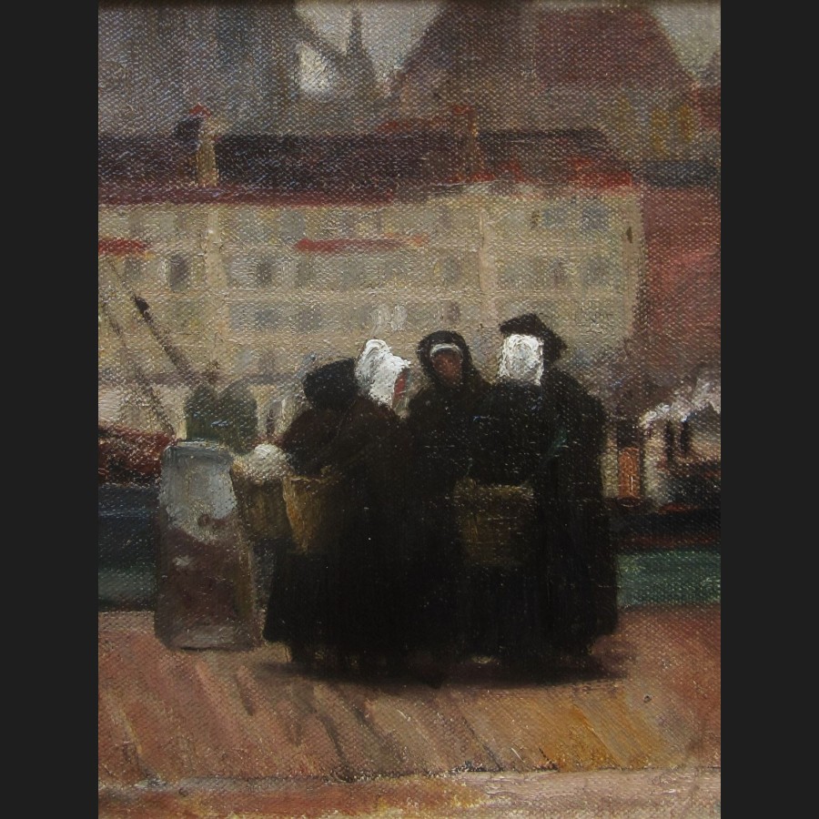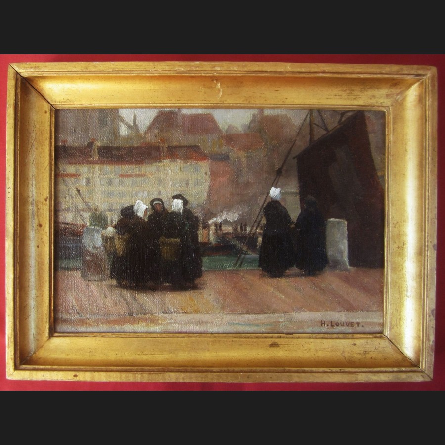 Henri Eugène LOUVET, Quai animé à Boulogne-sur-Mer, tableau