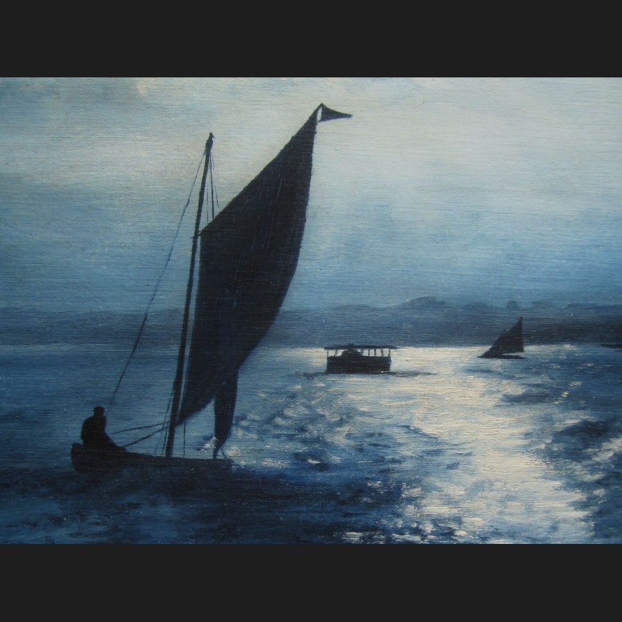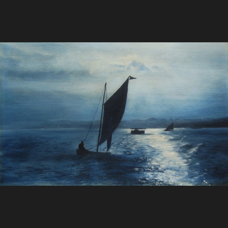 Attribué à Georges MARONIEZ, Embarcation au clair de lune en Bretagne, tableau