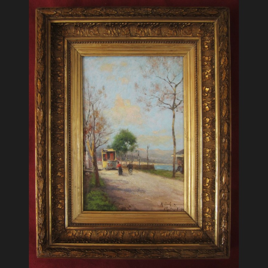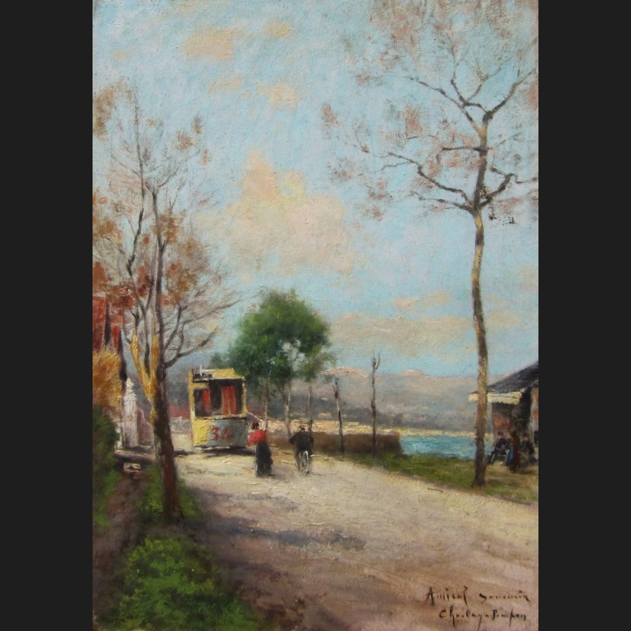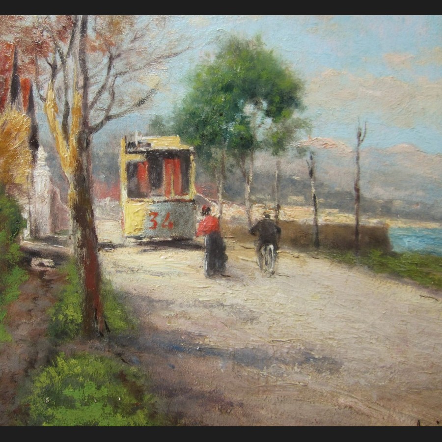 Charles CHARLAY-POMPON, Rue animée en bord de mer à Nice, tableau