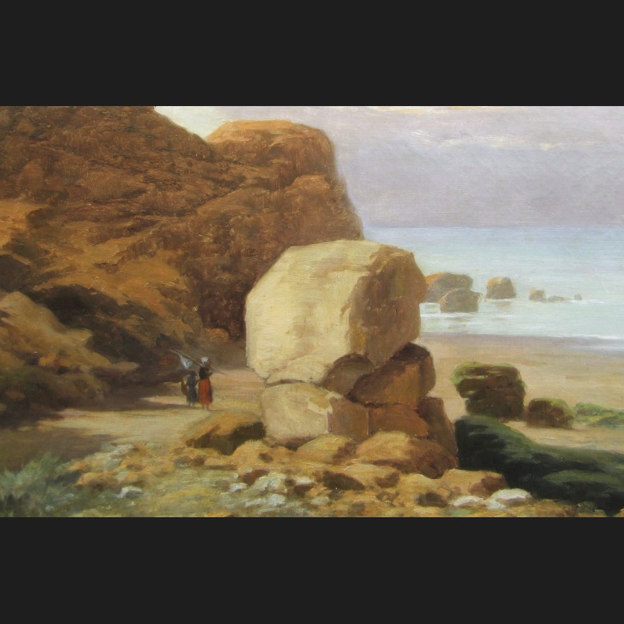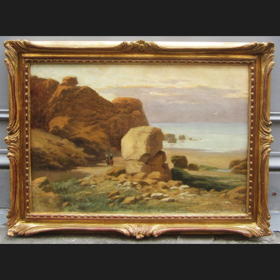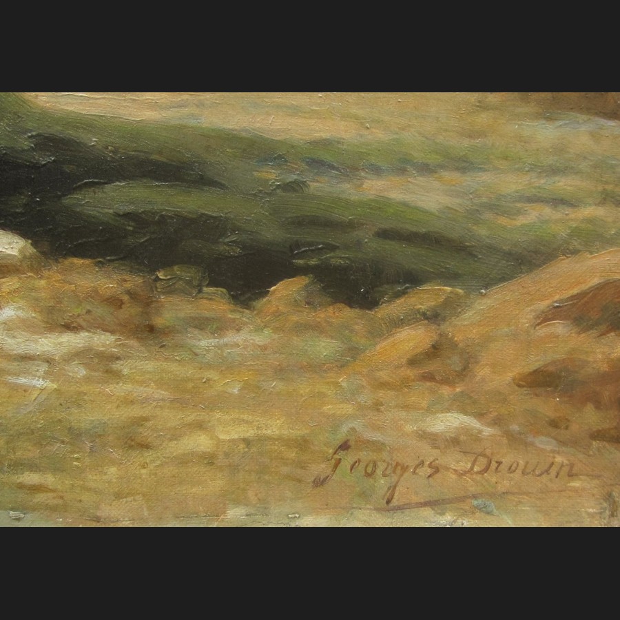 Georges DROUIN, Pêcheuses de crevettes en bord de mer vers Saint-Lunaire, tableau